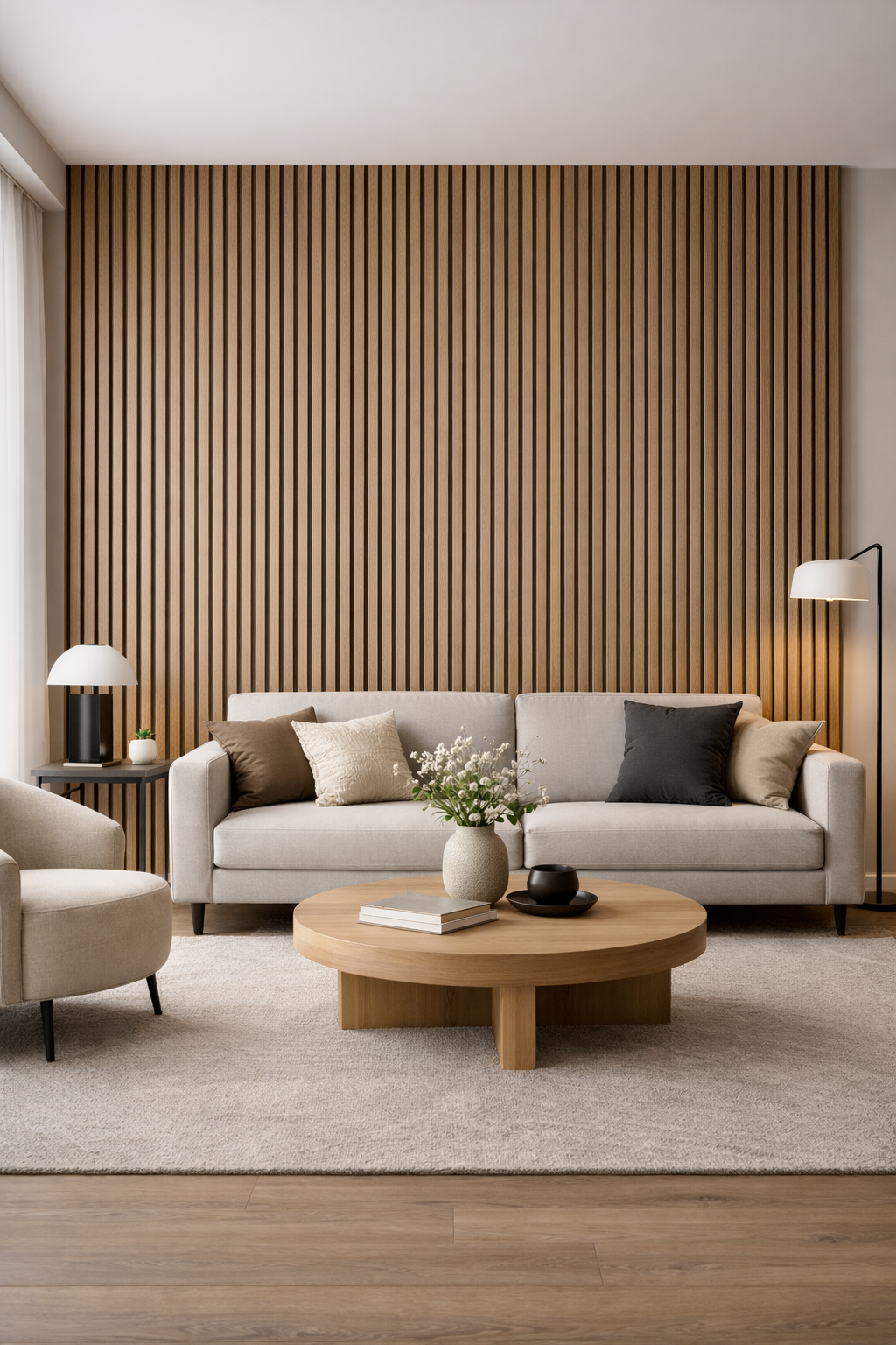 Bespoke timber slat panels with integrated acoustic backing, designed to enhance sound quality and interior aesthetics. Manufactured and installed across the UK.